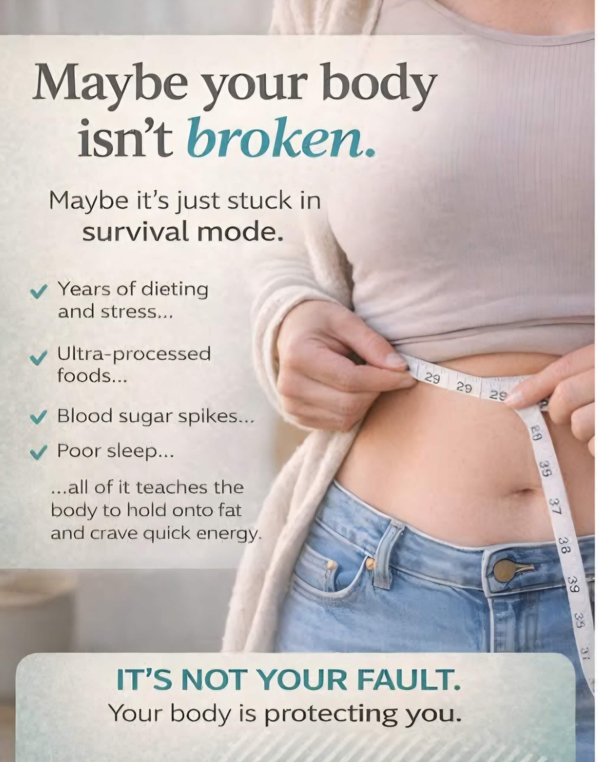 This body has been through stress, grief, depression, thyroid changes, hormone shifts, and more sleepless nights than I can count. And it makes sense that it doesn’t respond the way it did years ago. So I’m not trying to force it into submission — I’m trying to work with it.